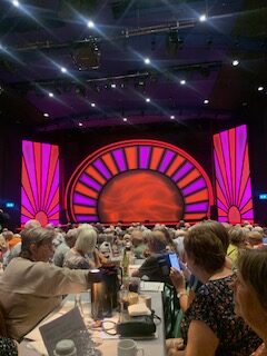 Tilbageblik på revy, musik og cafébesøg med grin og hyggeligt samvær. Sammenholdet blev styrket, og aftenen blev en mindeværdig oplevelse.
