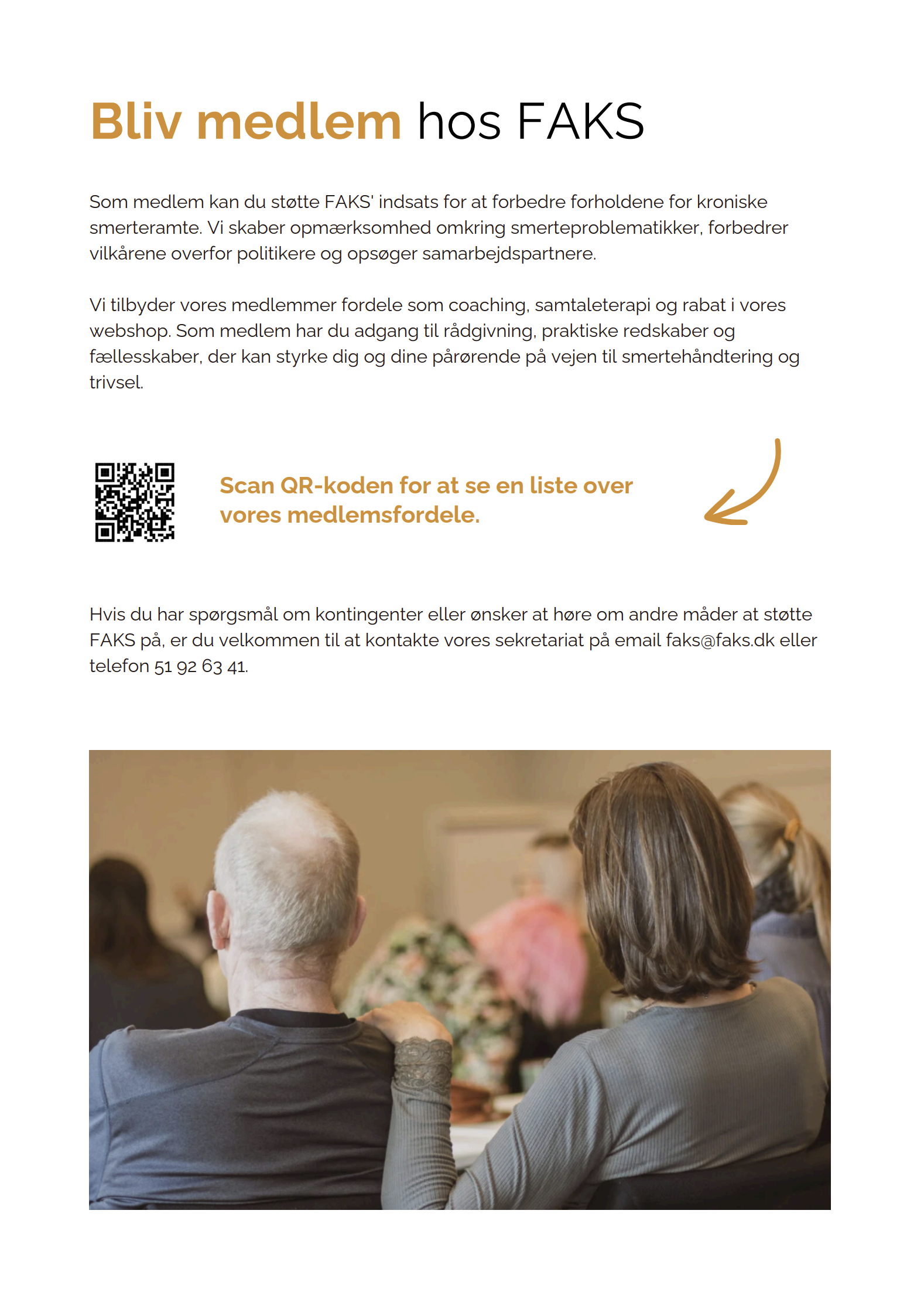 Denne informationsfolder giver et overordnet indblik i FAKS – Foreningen af Kroniske Smerteramte og Pårørende – og SmerteLinjen, hvor man kan få gratis, anonym rådgivning af erfarne frivillige med viden om kroniske smerter.