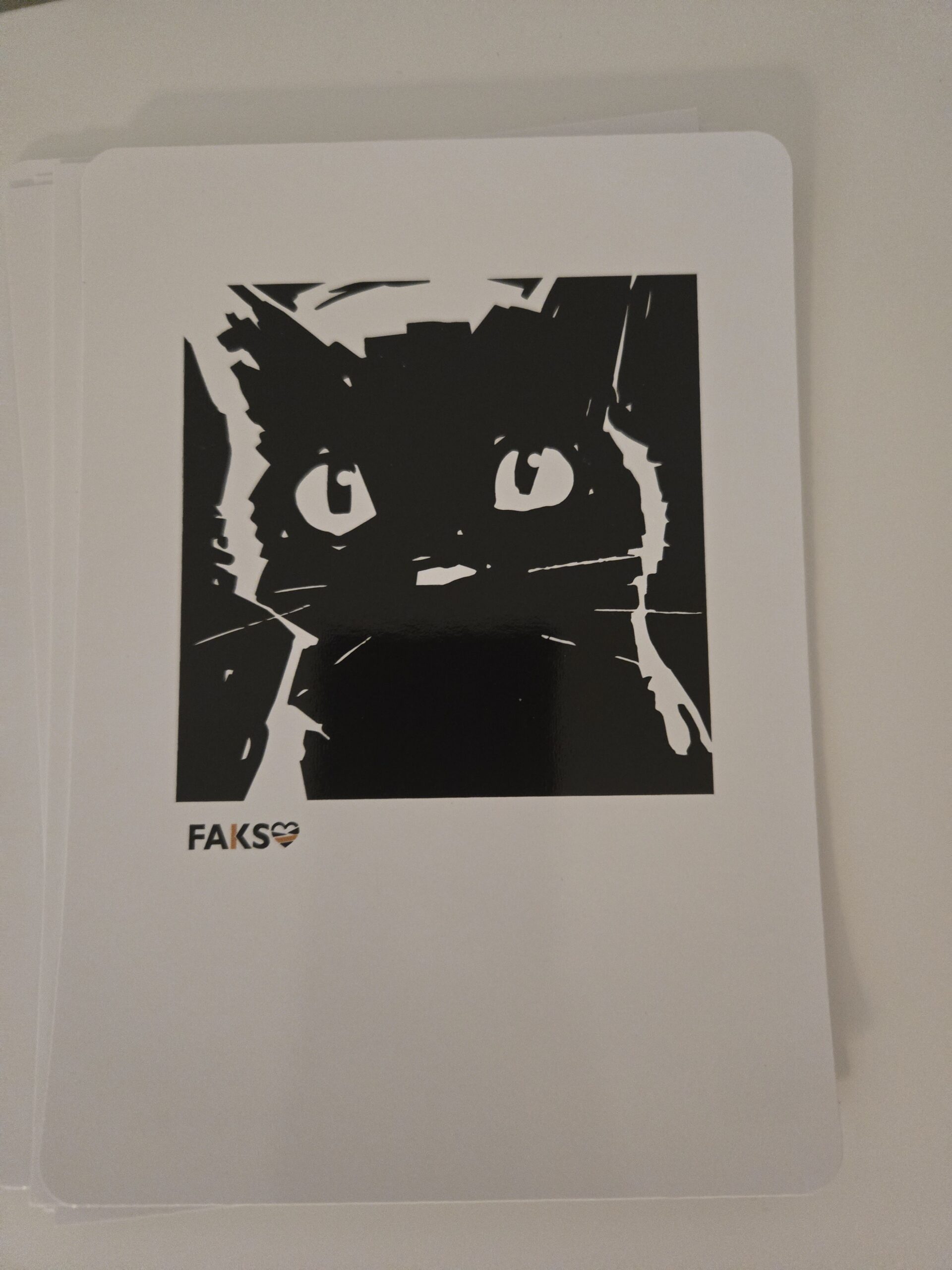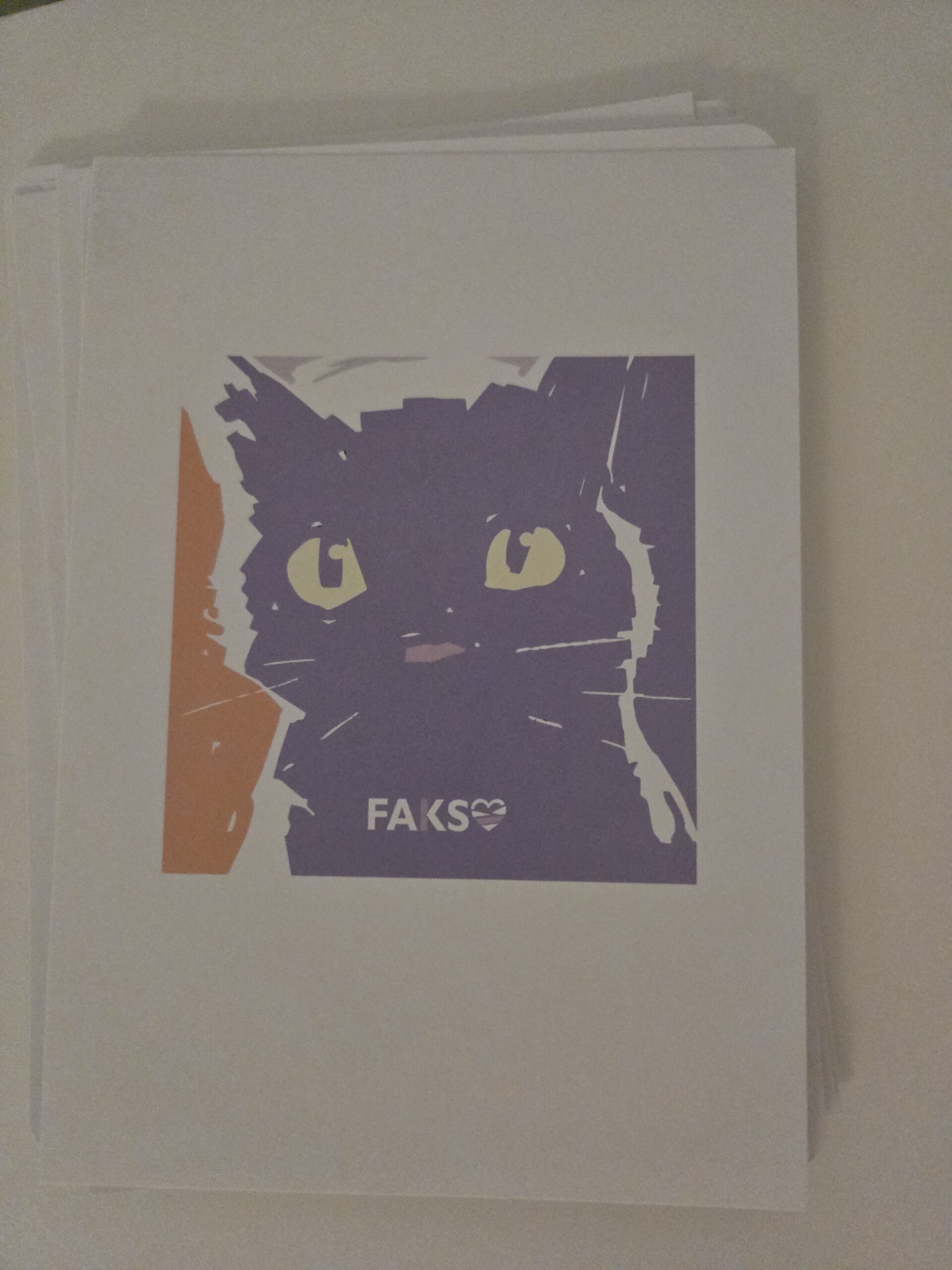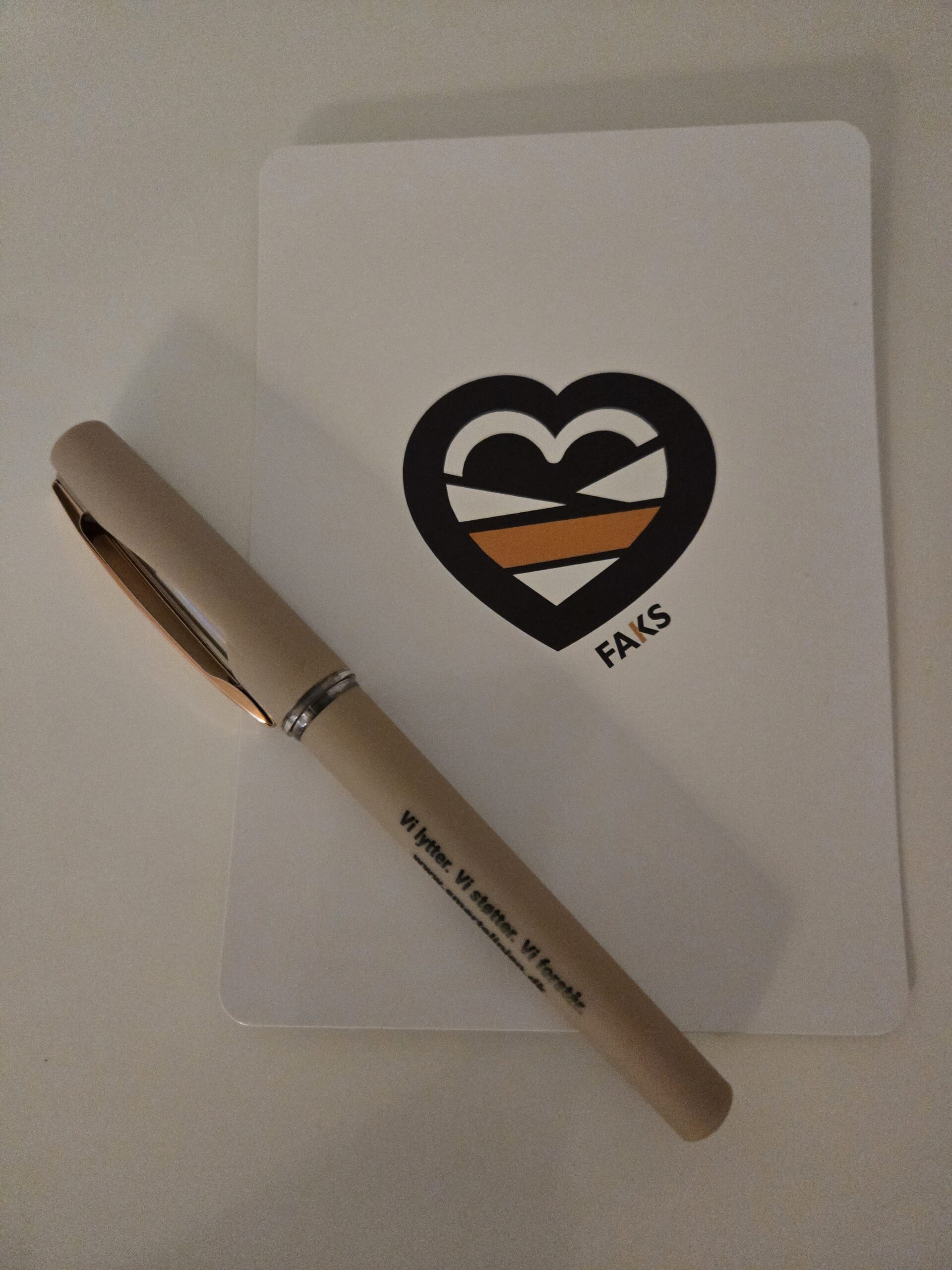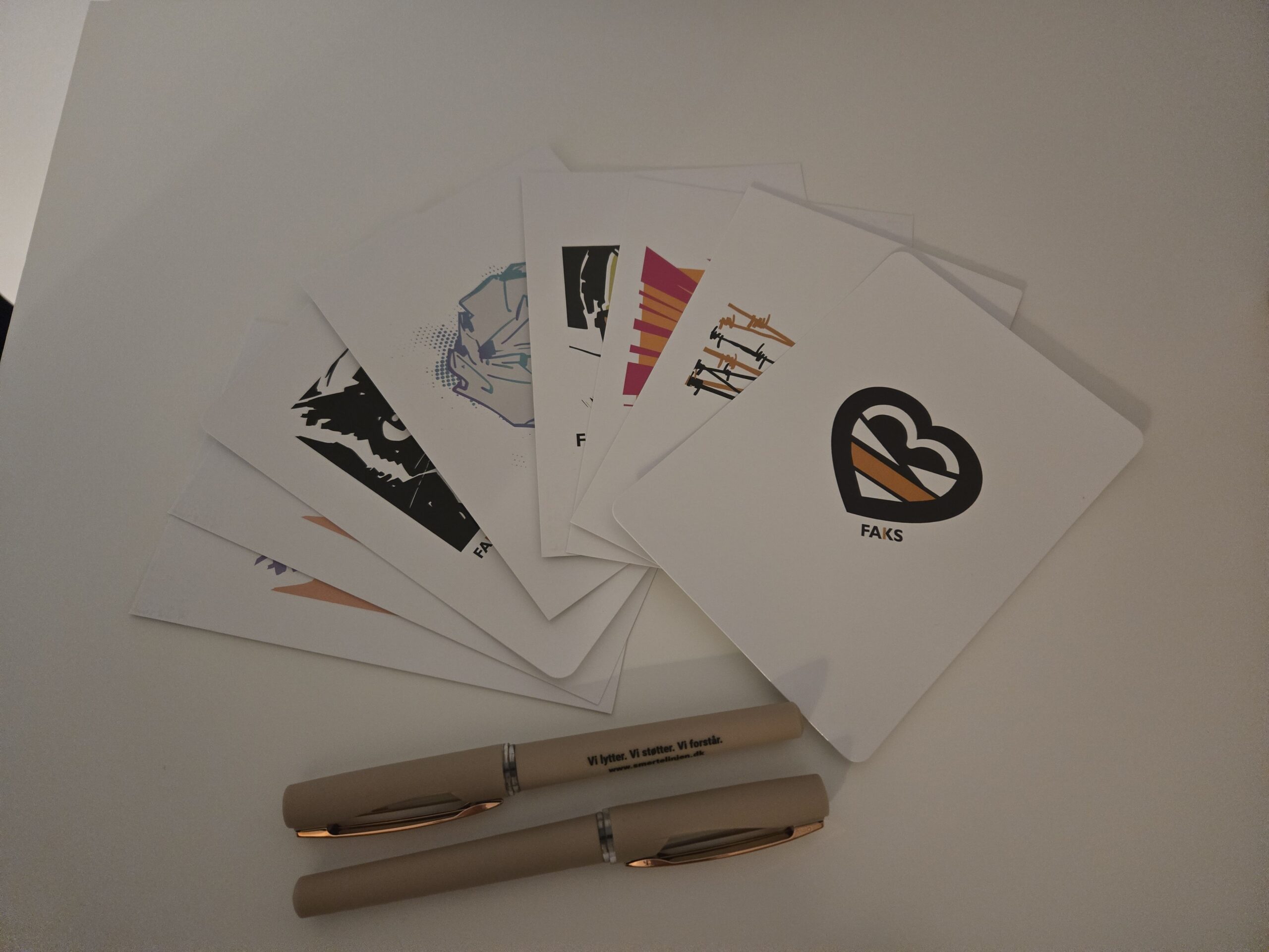 Indhold: 8 postkort med 1 gelkuglepen med FAKS logo.